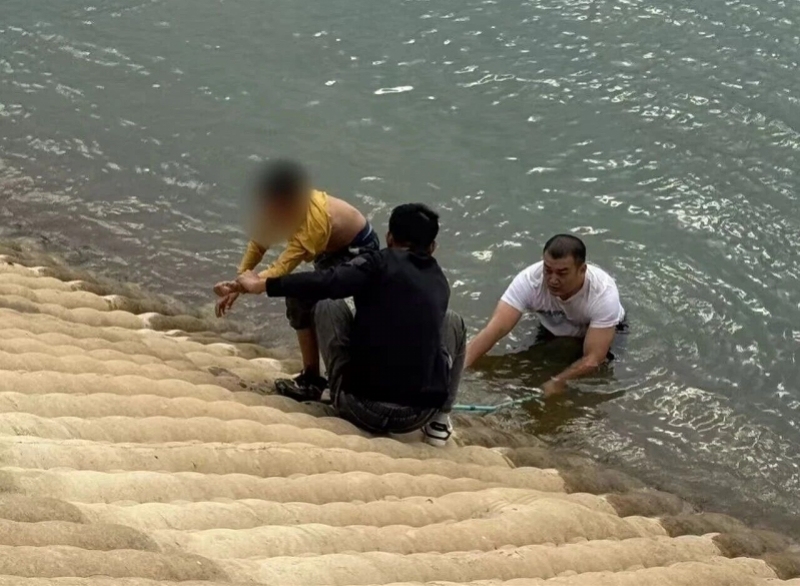 来到江边,侯兴键注意到,这名男孩在江中因挣扎时间过久,逐渐体力不支,身体渐渐下沉。他的落水位置距离岸边约3米,但因鱼竿不长,无法靠近男孩。